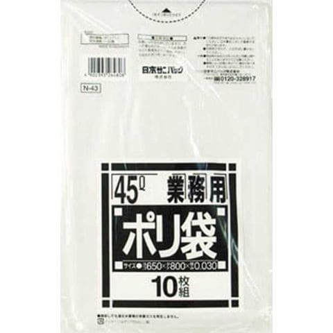 日本サニパック N-43Nシリーズ45L透明 10枚 N43CL_