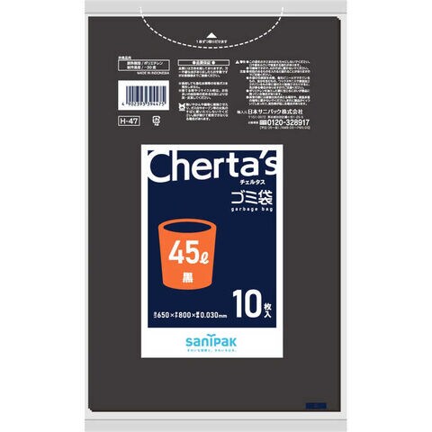 日本サニパック チェルタス ゴミ袋 45L 黒 10枚 0.03mm