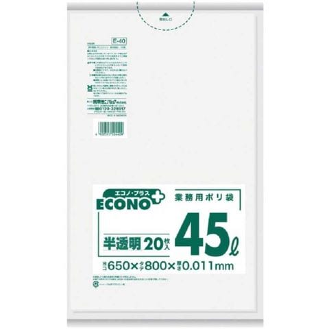 日本サニパック エコノプラス薄手タイプ半透明45L20枚 E40_