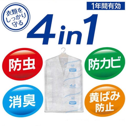 防虫、消臭、防カビ、黄ばみ防止の4つの機能で大切な衣類をしっかり守ります。