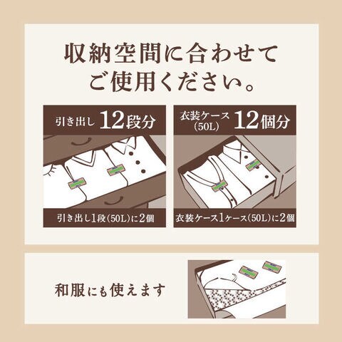 ●標準使用量:タンスの引き出し(50L)につき2個、衣装ケース(50L)につき2個、衣装ケース(75L)につき3個