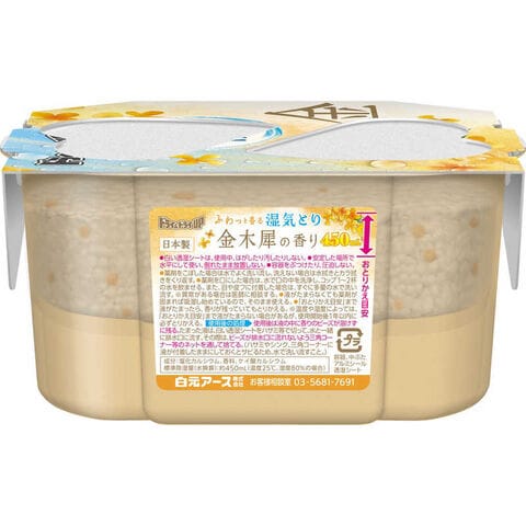 香り付きの湿気とり。押入れ、クローゼット、下駄箱などの湿気をとり、こもった嫌なニオイを金木犀の香りでさわやかに消臭します。使い捨て貯水タイプ。