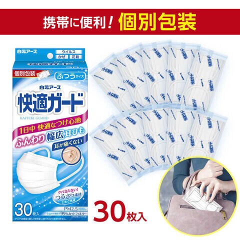白元 快適ガードマスク ふつう 30枚 快適ガード