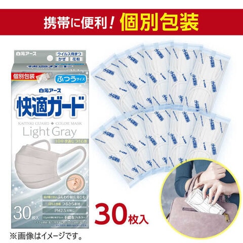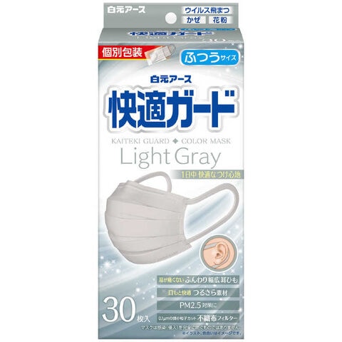 白元 快適ガードマスク ふつうサイズ 30枚入 ライトグレー