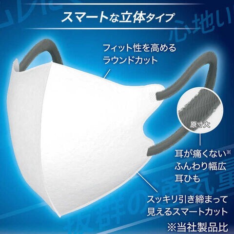 マスクの色:ホワイト、耳ひも:ブルーグレー