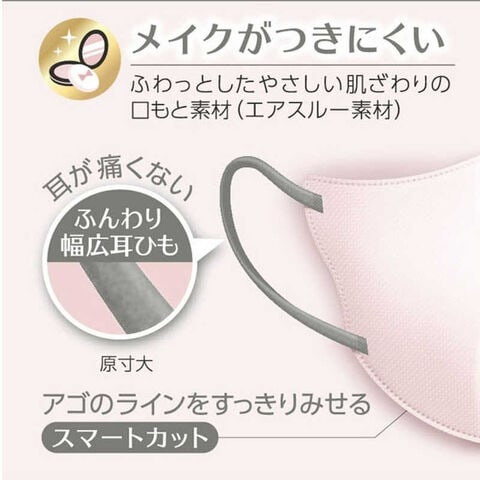 7枚入り マスクの色:アッシュピンク、耳ひも:グレー