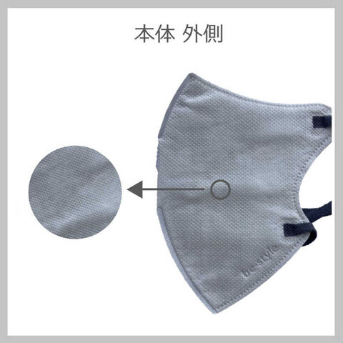 仕様2:【素材】●本体・フィルタ部:ポリプロピレン、ポリエチレン、ポリエステル●耳ひも部:ナイロン、ポリウレタン
