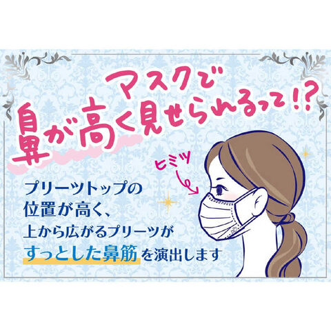 小顔に魅せる女性用マスク。通気性がよくて息がラク!ムレにくく、軽やかなつけ心地。キレイライン形状で美シルエットに。