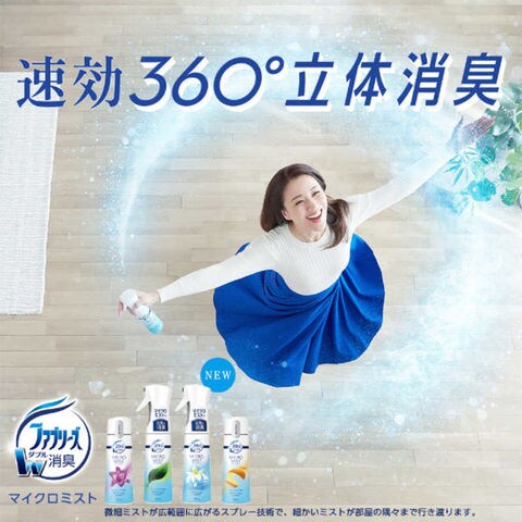 ファブリーズ独自の消臭成分がわずか10秒*でお部屋のニオイを消臭し、毎日爽やかなお部屋に!微細なミストが素早く効果的に広がる画期的な新スプレー採用、エアゾールガス不使用のスプレーで安全で、環境にもやさしい。