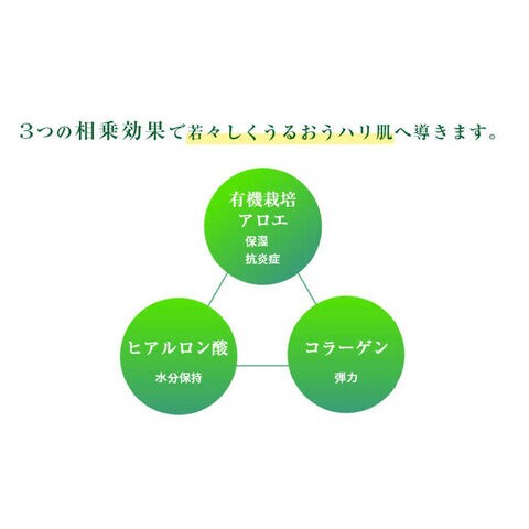 100%有機栽培のアロエとヒアルロン酸、コラーゲン配合のうるおい化粧水。