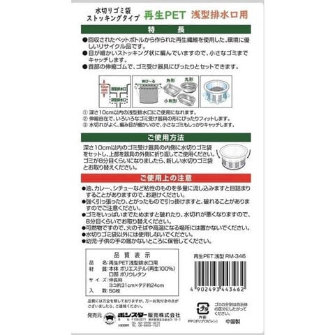 ボンスター 水切り袋ストッキング再生PET浅型排水口用50枚 RM-346