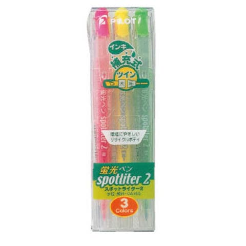 OA対応の蛍光ペン インキ補充タイプ ツイン式 3色セット