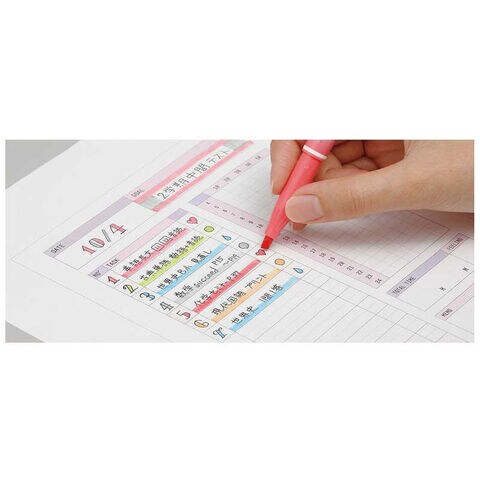 こすると消えるラインマーカー 見やすいふんわり色採用 白を基調とし、グラデーションカラーのボディを採用。