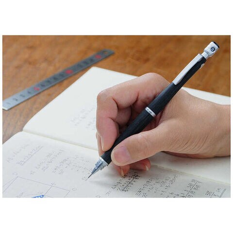 柔らかな曲線形状で手に馴染む、低重心設計のスリムな本格派0.3ミリシャープペン。