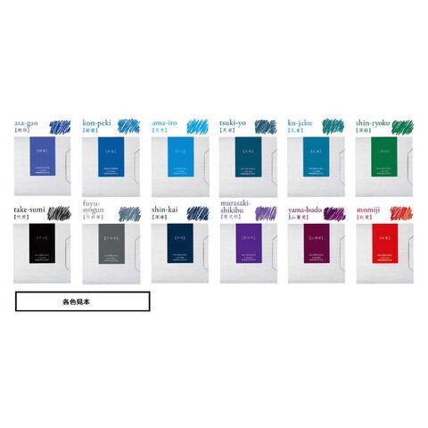 日本の美しい情景を色のモチーフにした彩り豊かな万年筆専用のインキです。万年筆の軸をはずし、ペン先を上に向け、カートリッジを差し込みます。カートリッジは回さずにまっすぐ差し 込みましょう。回しながら差し込むと首軸の内部を傷めてしまうことがあります。