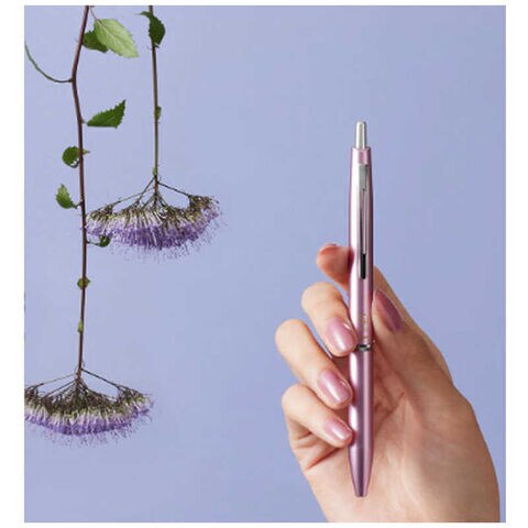 春の訪れを感じさせる「花の移ろい」をテーマに、鮮やかな色合いをメタリックのボディカラーで表現した手元を美しく彩ることのできる油性ボールペンです。