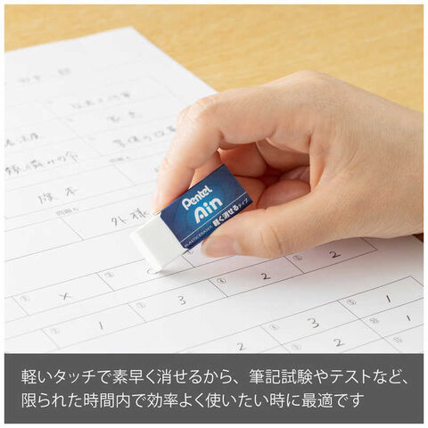〈軽く消せるタイプ〉少ない消しくずで机を汚さず、軽い力で楽に消せます。