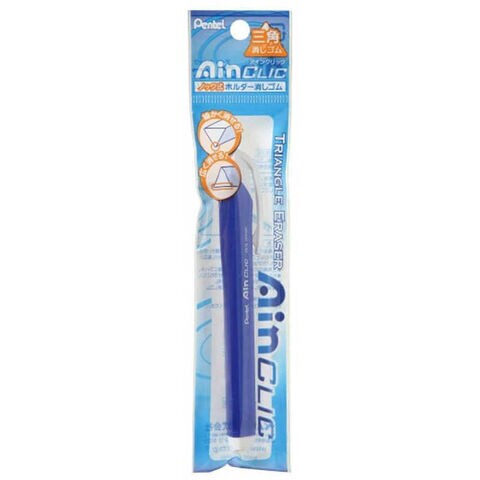 消しゴムが三角形のホルダー式消しゴム。角で細かい部分、辺で広い面と自由に消去できます。