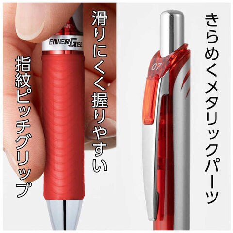 ぺんてる [ゲルインキボールペン] エナージェル(0.5mm /赤) XBLN75ZB シルバー