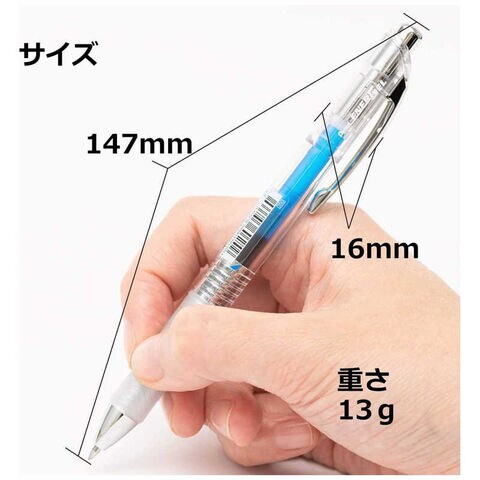 クリア軸から直観的にインキ色がわかるエナージェルインフリー。