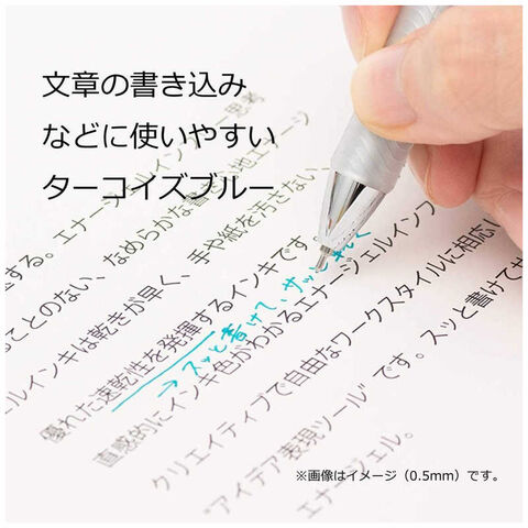 クリア軸から直感的にインキ色がわかるエナージェルインフリー。