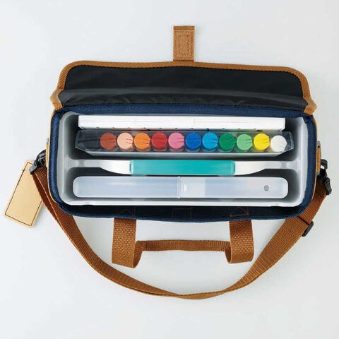 低学年から高学年まで使える、オシャレな杢調を採用したスケッチセットです。軽くてコンパクト。更にバッグは洗濯できます。手提げでも肩掛けでも使える2WAYタイプ。