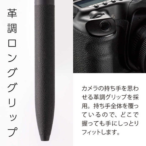 ●不快な音を軽減する、静かで心地よいノック感●安定感抜群の革調グリップ。カメラの持ち手を思わせる、革調ロンググリップ。ロンググリップなので持つ場所を選ばず、手にフィットします。