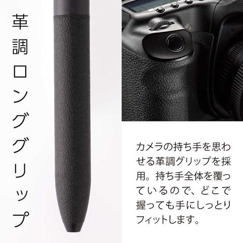 ●不快な音を軽減する、静かで心地よいノック感●安定感抜群の革調グリップ。カメラの持ち手を思わせる、革調ロンググリップ。ロンググリップなので持つ場所を選ばず、手にフィットします。