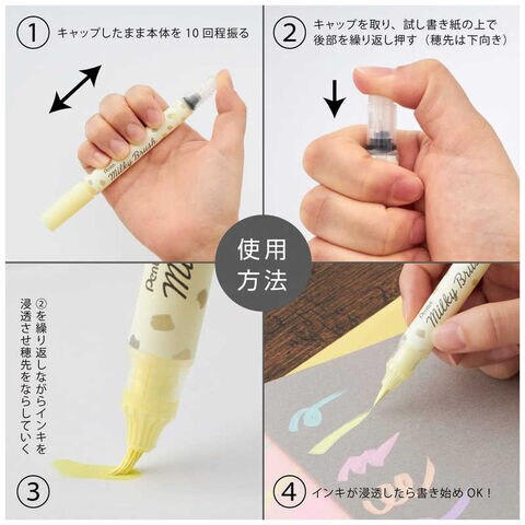 ぺんてる 筆ペン ミルキーブラッシュ パステルイエロー XGFH-PG