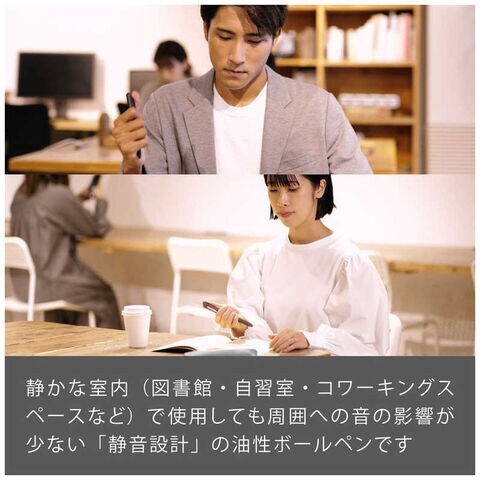 濃く発色の良いなめらか油性インキを搭載。従来品を改良し筆跡のボテを軽減しているため、書いた後に汚れにくいインキです。