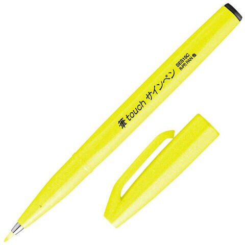 ぺんてる 筆タッチサインペン蛍光イエロー SES15C-FG