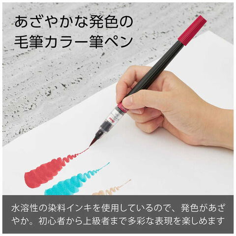 みずみずしく鮮やかな発色で、毛筆タイプならではの自由な表現ができるカラー筆。