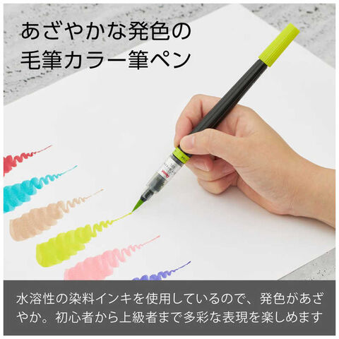 みずみずしく鮮やかな発色で、毛筆タイプならではの自由な表現ができるカラー筆。