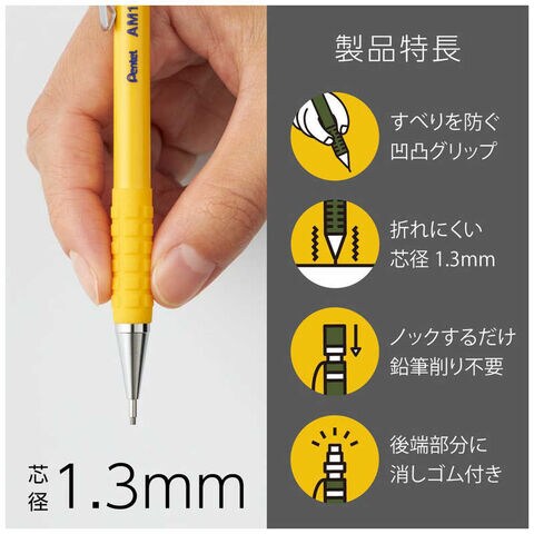 ぺんてる AMAINシャープペン1.3mm イエロー AM13-G