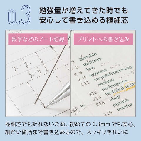 1秒を争う試験の時や、ふと思いついたアイデアをすばやくメモしたい時に活躍するシャープペンシルです。