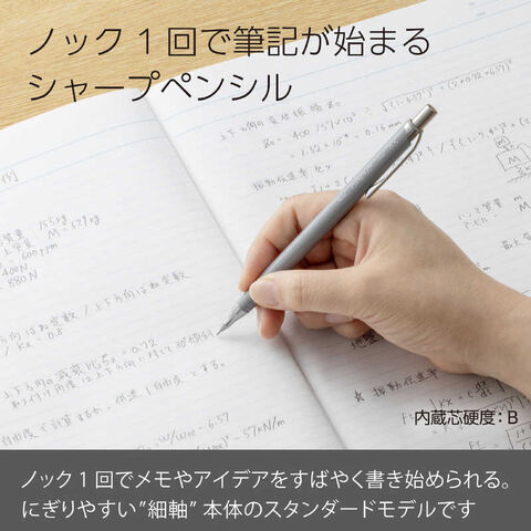 1秒を争う試験の時や、ふと思いついたアイデアをすばやくメモしたい時に活躍するシャープペンシルです。