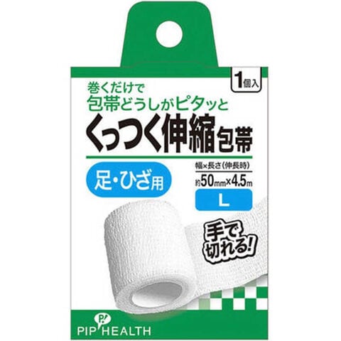 包帯どうしがくっつくので、巻きはじめから終わりまでズレずにしっかり巻け、止め具がいらない包帯。