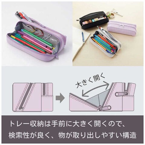 大きく開き、中身が見やすいツイン収納ペンケース。