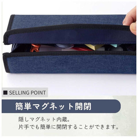 フタが大きく開くので、収納物が一目で探しやすく、出し入れしやすいペンケースです。