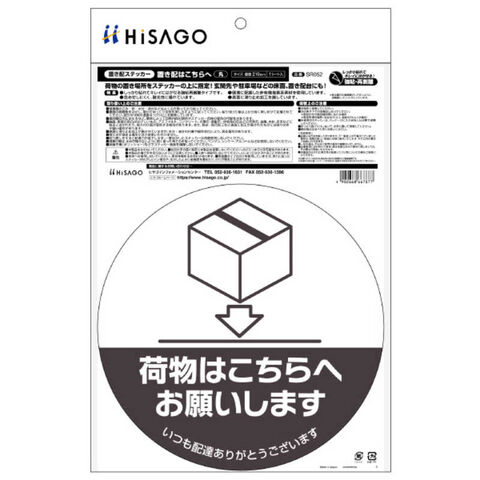 ヒサゴ 置き配ステッカー 置き配はこちらへ 丸 直径210mm SR052