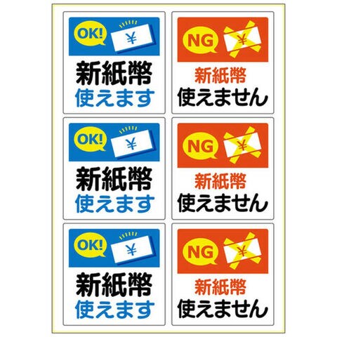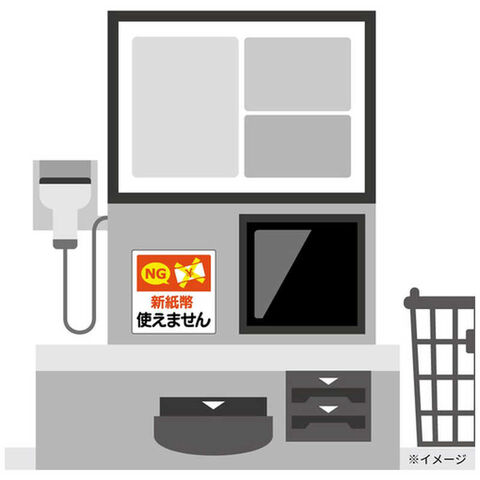 ・無人レジ周りや券売機などに貼ることによって、新紙幣に対応しているか確認できます。