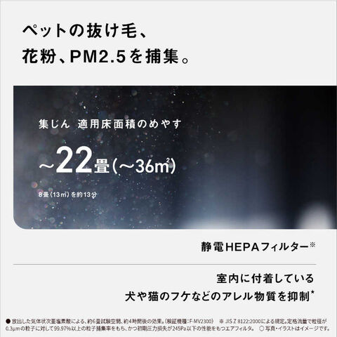 ・コンパクトサイズながら大型フィルターを搭載にし、22畳までのお部屋の集じんにも対応