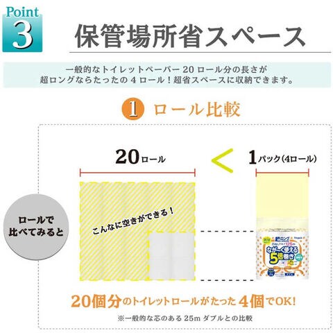 ・通常の5倍長巻き(※)だから、取り替え頻度も収納スペースも大幅に減らせます。
