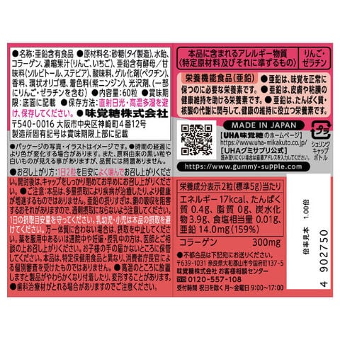 UHA味覚糖 UHAグミサプリ 亜鉛 30日分ボトル 28粒