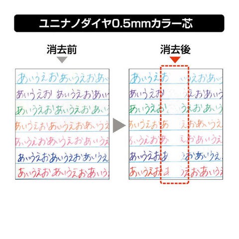 ●消しゴムで消しやすいカラー芯