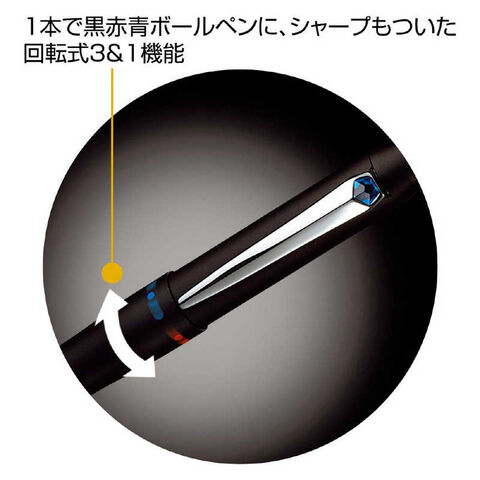 1本で黒赤青シャープもついた多機能回転式ボールペン