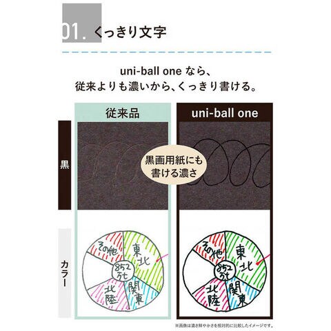 くっきりと主張する新技術ユニボ-ルワンインクを採用したゲルインクボールペン