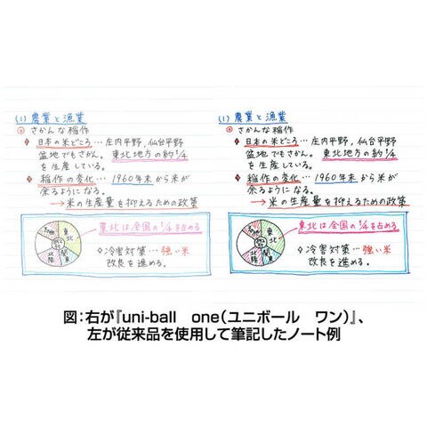 くっきりと主張する新技術ユニボ-ルワンインクを採用したゲルインクボールペン。