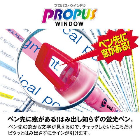 ペン先に窓がある!はみ出し知らずの蛍光ペン!