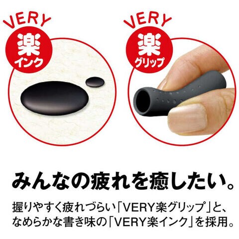 握りやすく疲れづらいグリップとなめらかな書き味のインクを採用。5本パック
